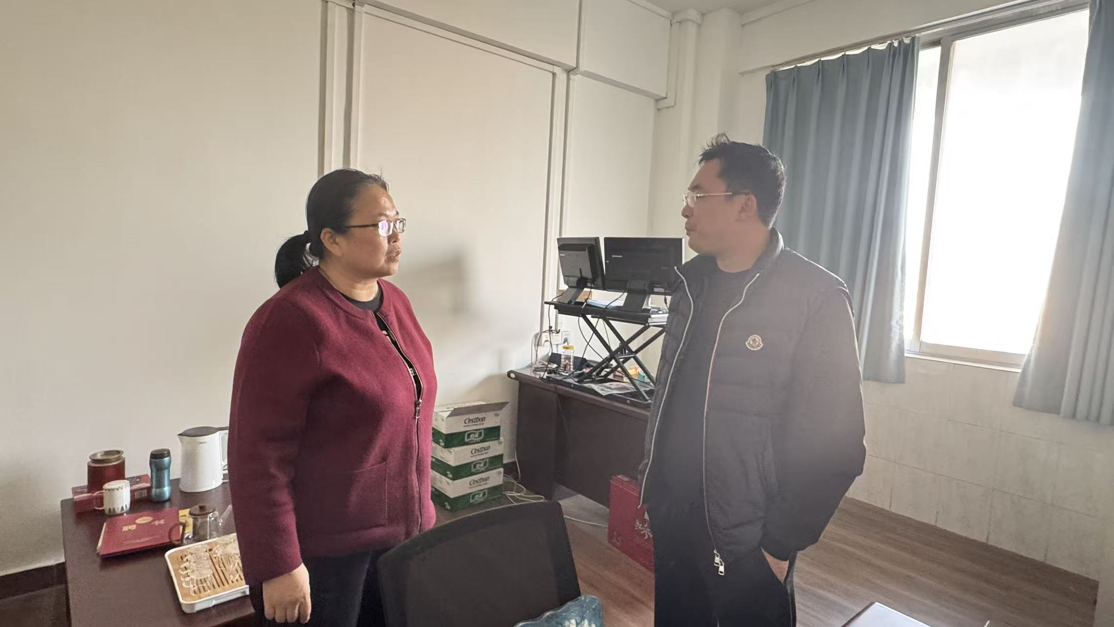 随后,秘书长一行走访了创新创业学院,与王北一院长进行了亲切交流。张志荣秘书长对双创学院在推动创新创业教育、孵化优质项目以及大力支持学会活动等方面所做的贡献表示感谢。王院长回顾了双方合作历程,并表示双创学院将继续发挥平台优势,深化与学会的协同合作,共同为培养具有创新精神和实践能力的高素质人才贡献力量。